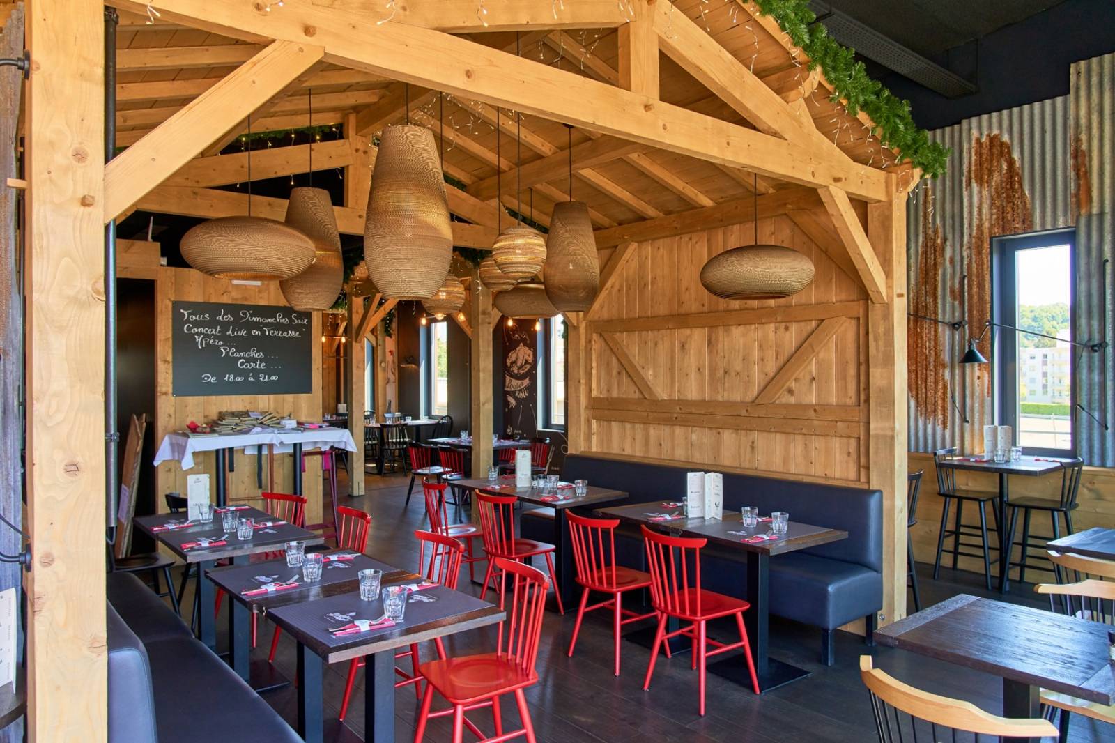 Notre restaurant vous accueille tous les jours de 10h00 à 00h00, pour vos déjeuner, vos goûter, vos dîner ou juste pour boire un verre!Pour s'évader ou travailler découvrez nos différents espaces.Profitez de notre bar avec ses fauteuils cosy; vous préférez le grand air? Plongez dans les Monts du L...